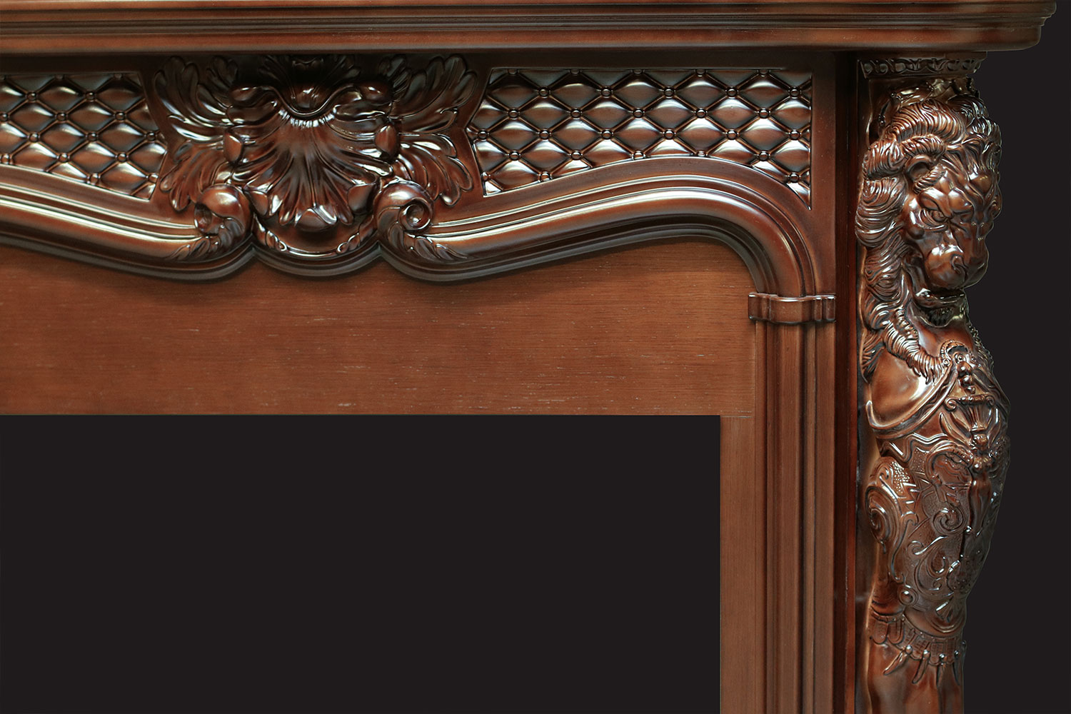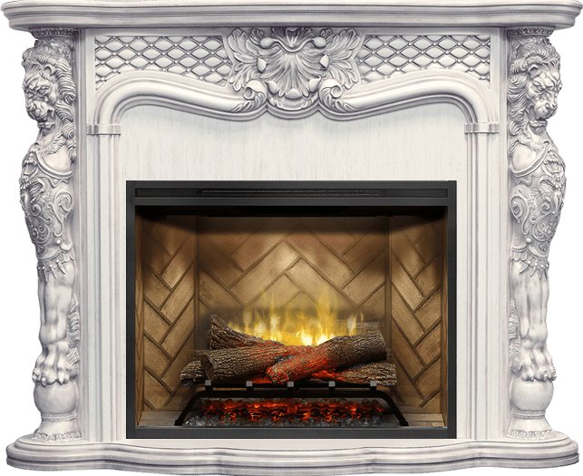 Каминокомплект Dimplex Castleвыполнен в стиле барокко. Резной декор с оригинальными мифическими сюжетами и изящные линии конструкции придают модели старинный вид. Дополненный колоннами в виде львиных фигур, такой камин станет прекрасным приобретением для любителей богатых и необычных дизайнов.