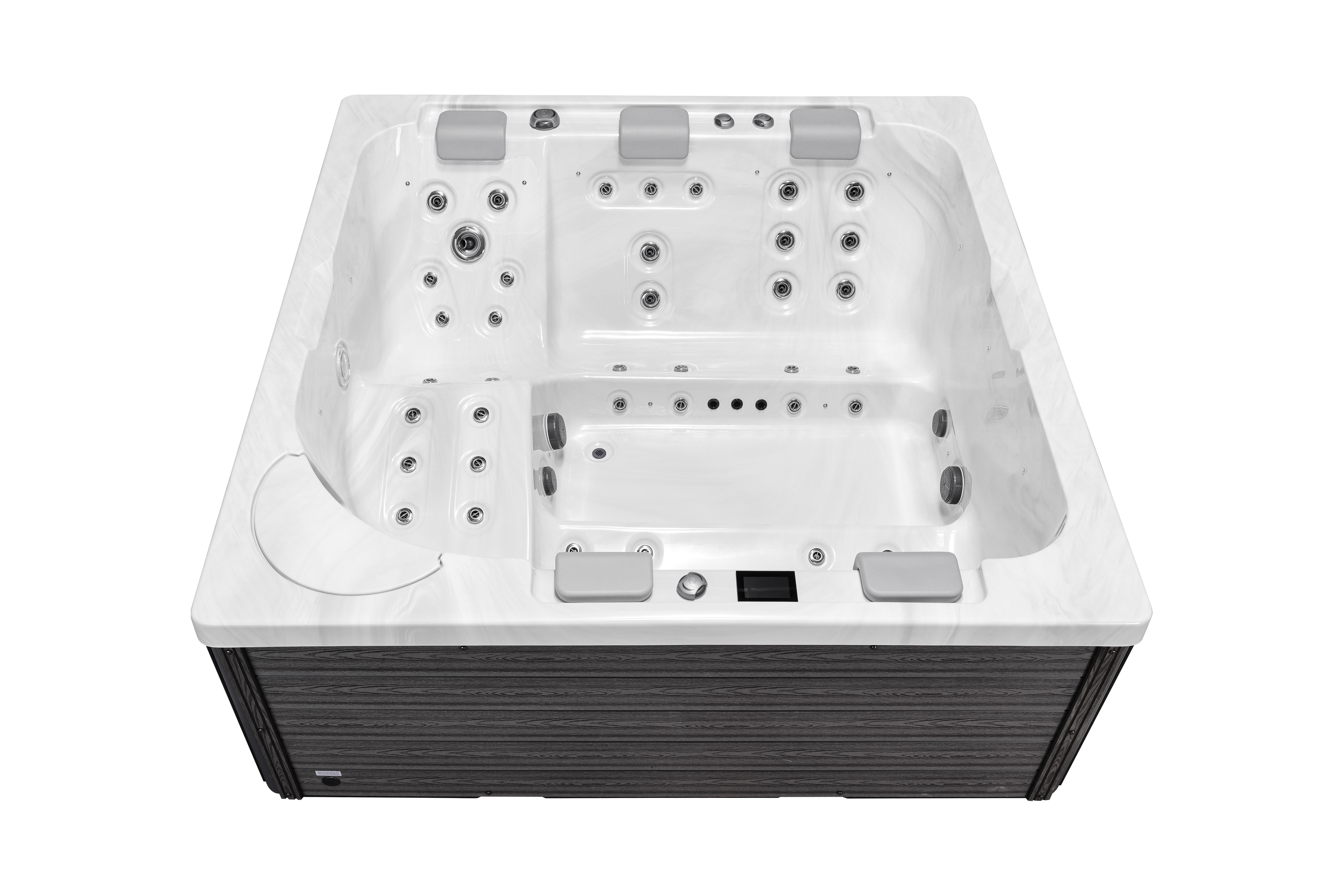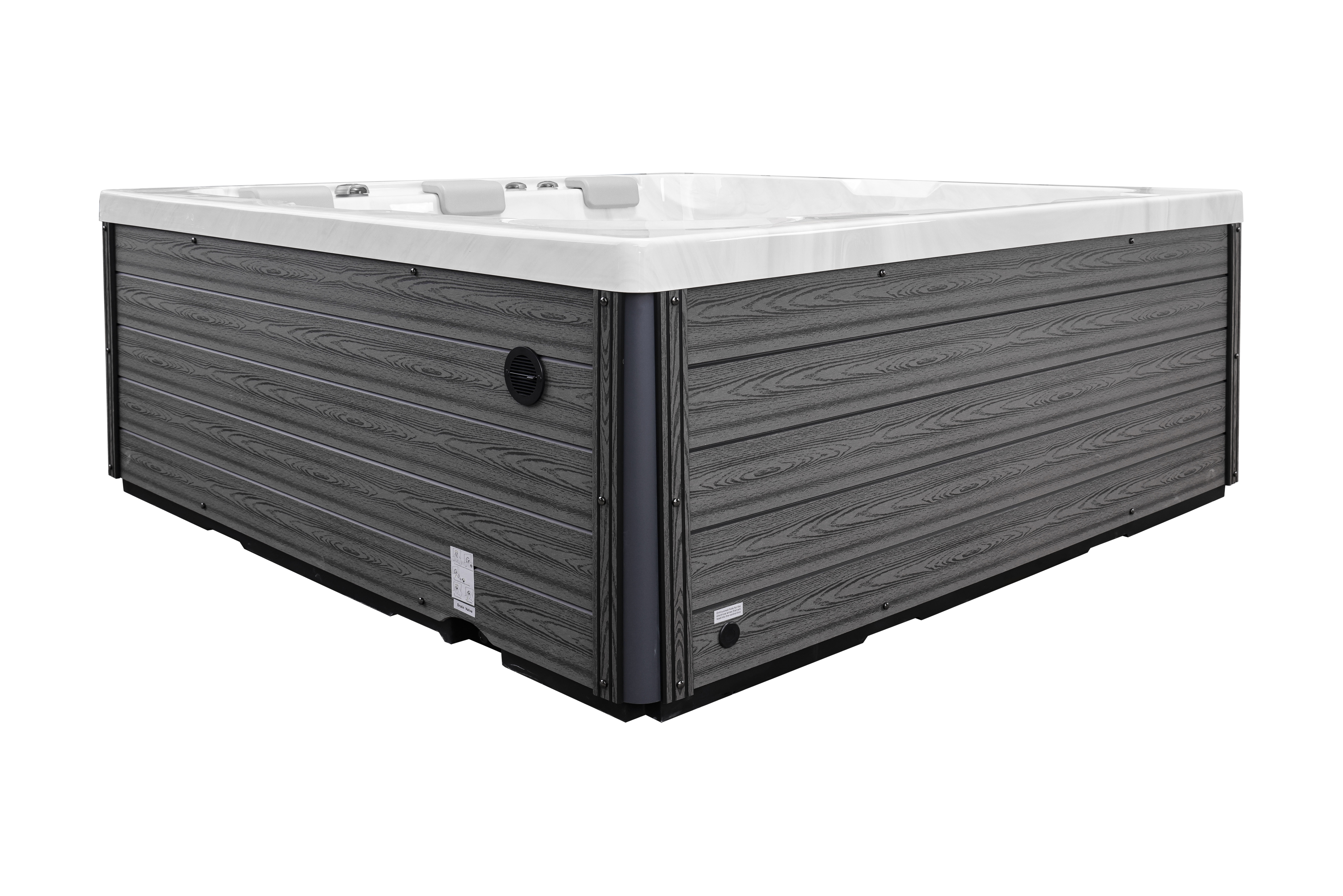 Прочная опорная рама из гальванизированной стали гарантирует устойчивость и долговечность конструкции. Элегантная обшивка из ДПК-панелей не только придает спа-бассейну современный внешний вид, но и устойчива к воздействию влаги, перепадам температур и ультрафиолетовому излучению.