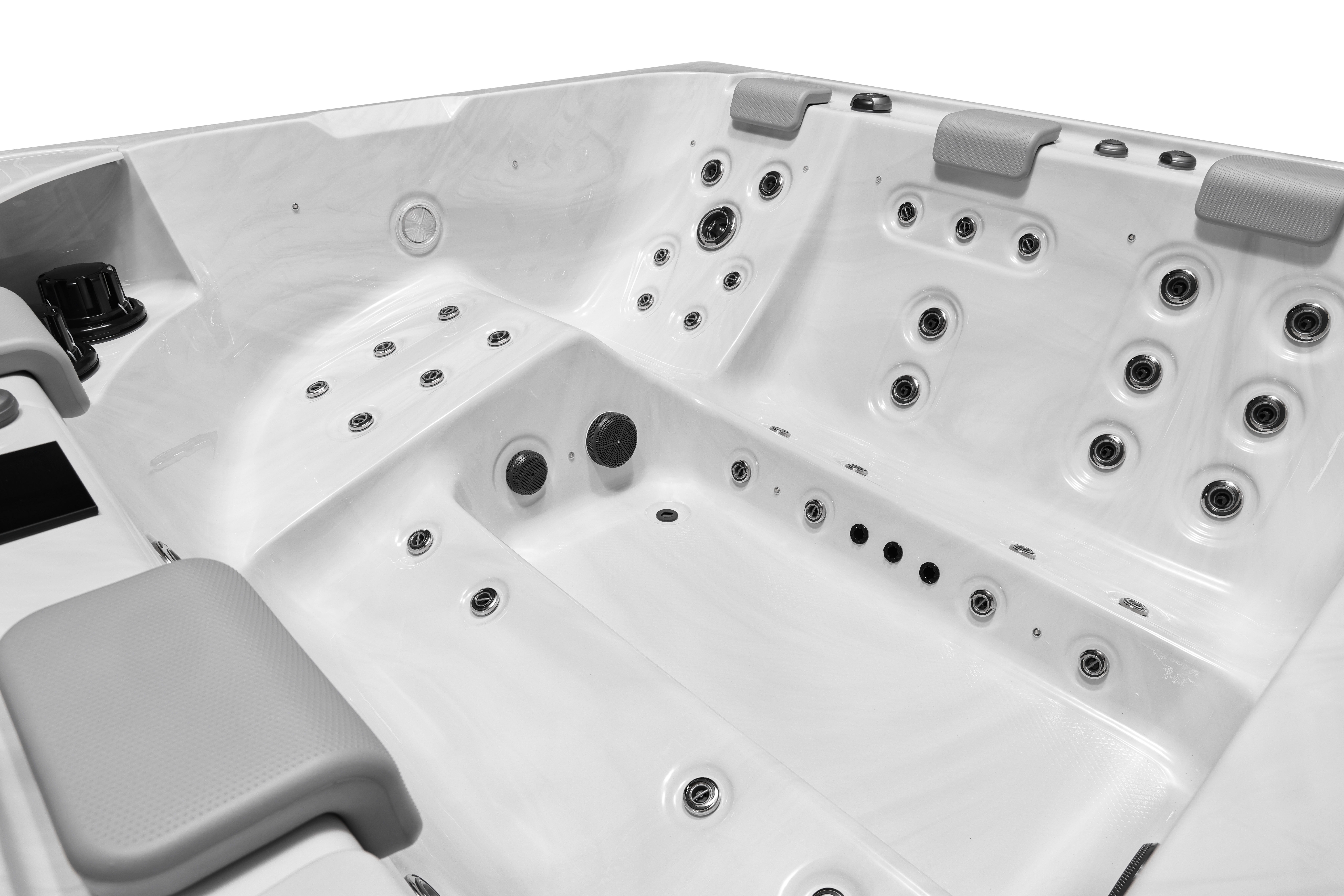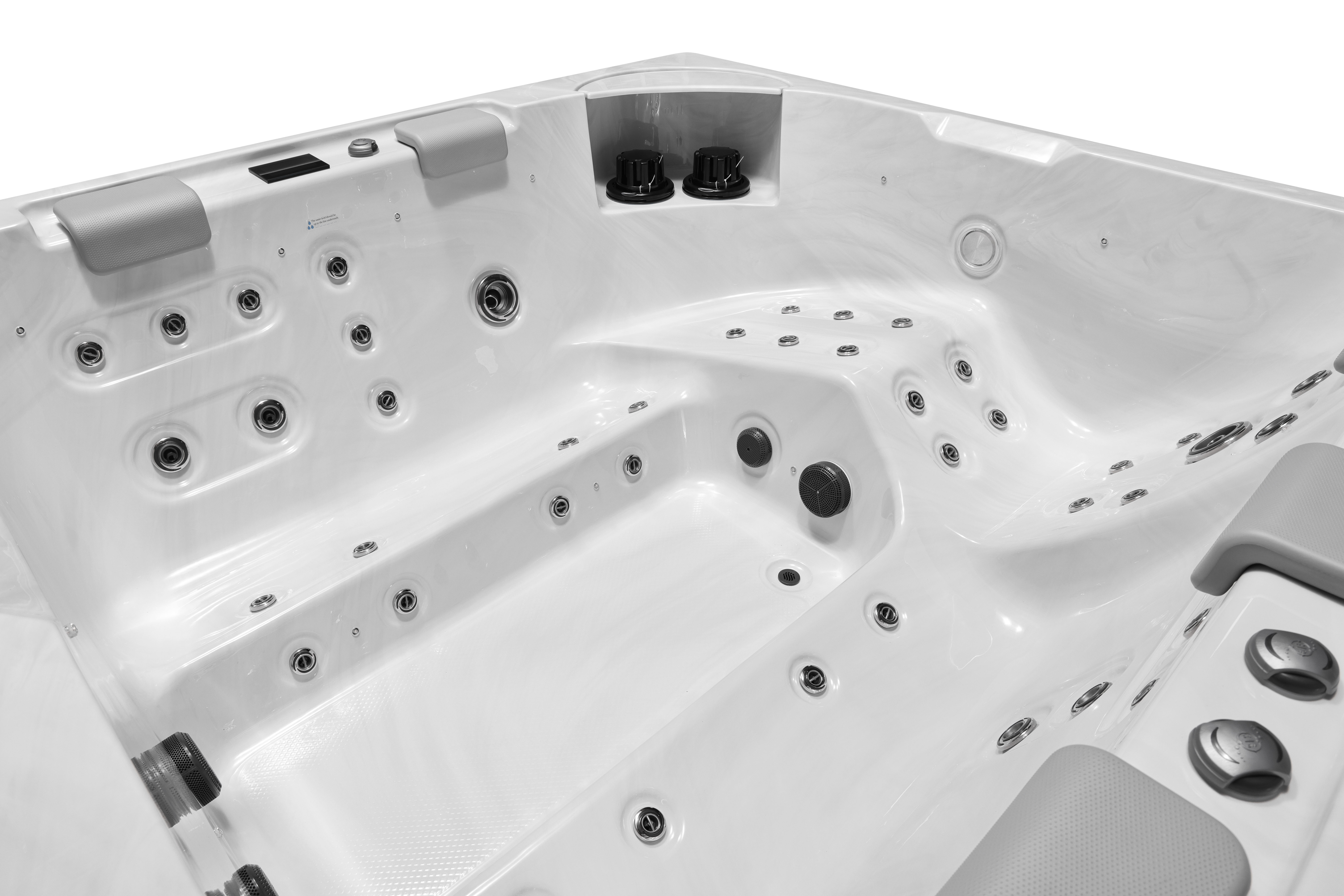 Благодаря мощному нагревателю 3 кВт, двум водяным насосам по 2,2 кВт каждый и циркуляционному насосу, Nari быстро достигает желаемой температуры и обеспечивает интенсивный массаж, сохраняя при этом экономичность в эксплуатации.