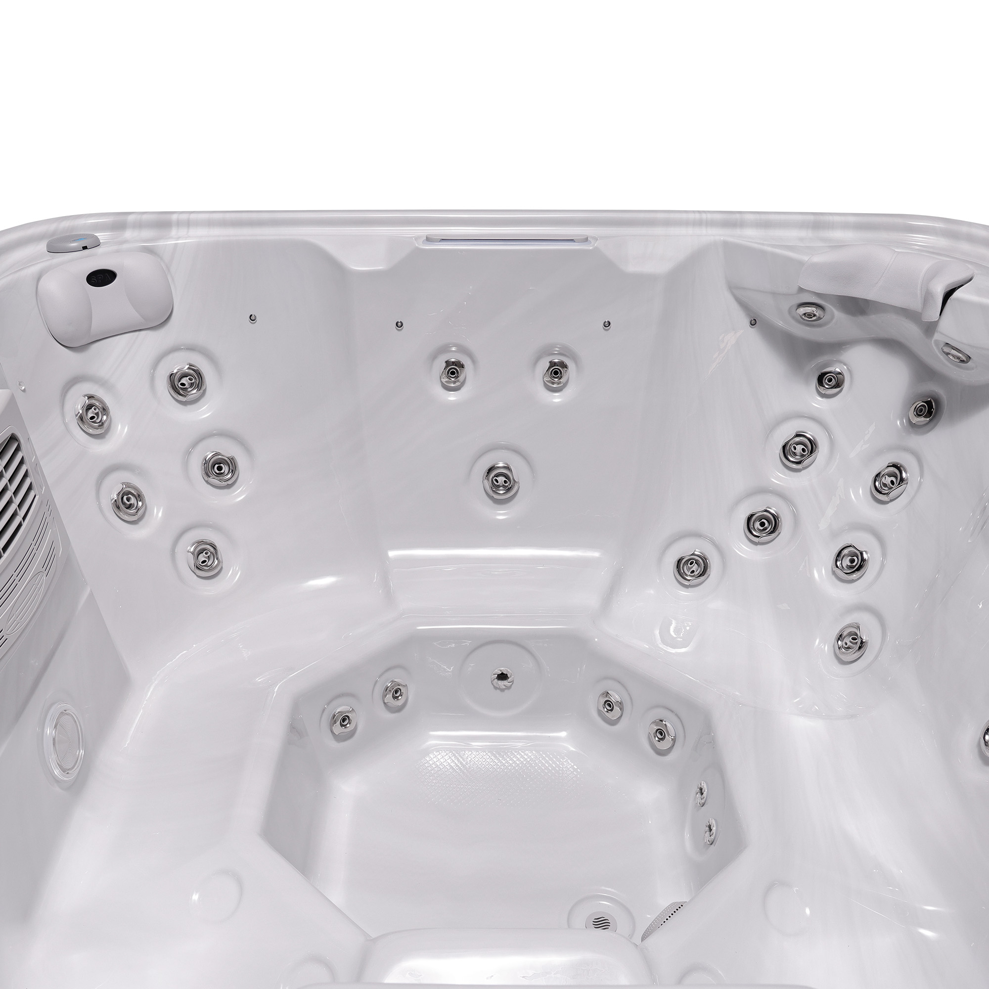 Хорошо продуманная система освещения превращает вечерний отдых в эстетическое наслаждение. Многоцветная подводная подсветка Northern Lights, дополненная изящной подсветкой ватерлинии, создает сложную игру света на воде, способствующую глубокой релаксации и визуальной гармонии.
